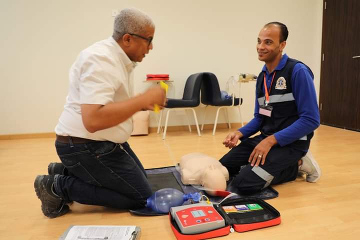 وقد أنهى أكثر من ٧٠ متدربا يمثلون المرحلة الأولى البرنامج التدريبي لجمعية القلب الأمريكية، وذلك وفق برنامج تدريبي حديث قائم على جانب عملي يتضمن محاكاة لحالات حرجة طبيًا لكبار السن والأطفال، وذلك باستخدام نماذج محاكاة ذكية بها مجسات لقياس وتقييم أداء المتدرب، كما يتضمن التدريب اختبار عملي لعملية إنقاذ وإسعاف مصاب، بالاضافة إلى اختبار تحريري في المقرر التعليمي لجمعية القلب الأمريكية، وقد تحصل كافة المتدربين على شهادة موثقة ومعتمدة دوليا من جمعية القلب الأمريكية.