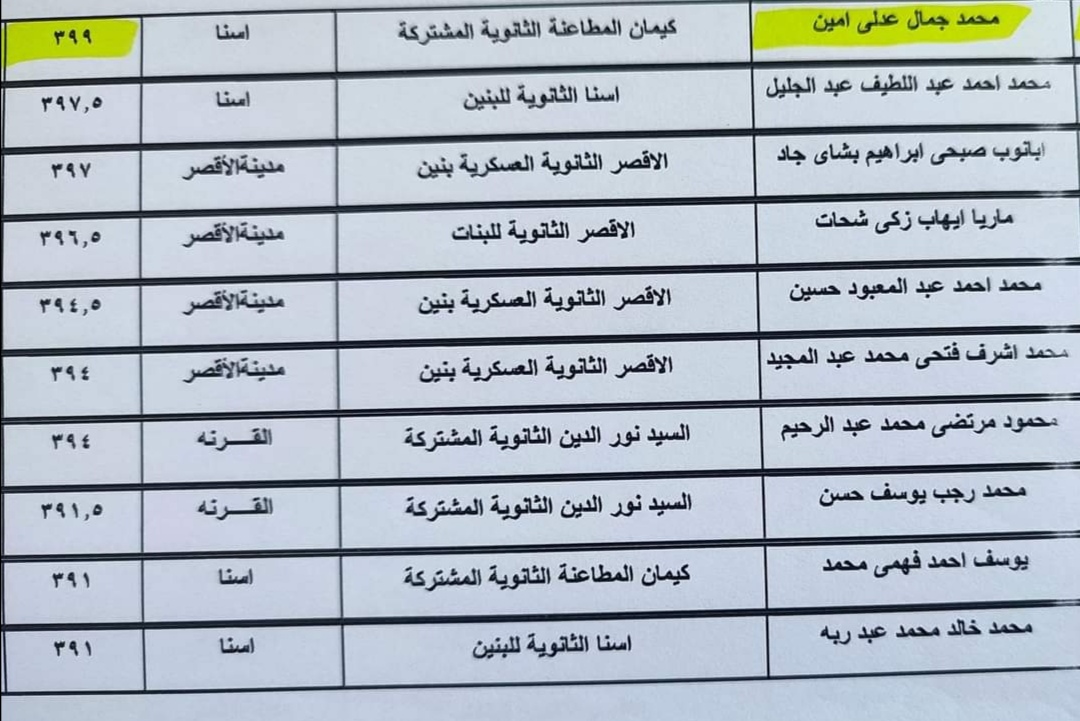 أسماء أوائل الشهادة الثانوية العامة بالأقصر