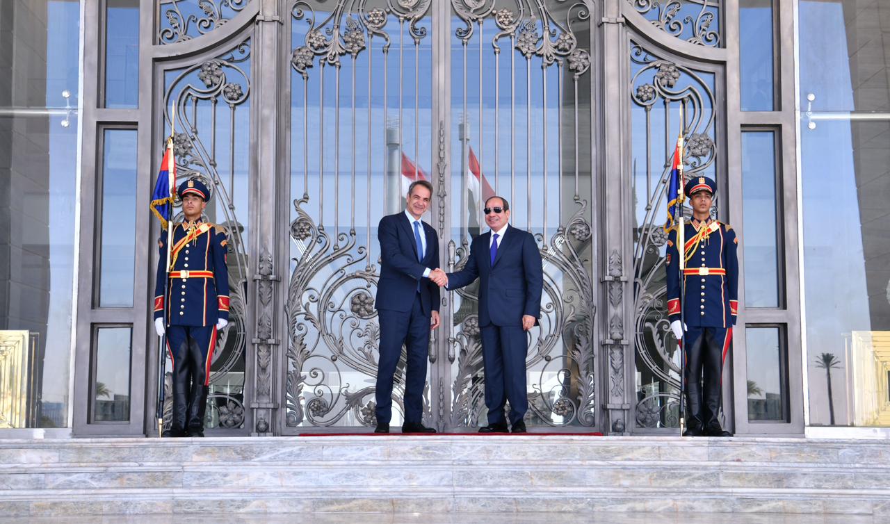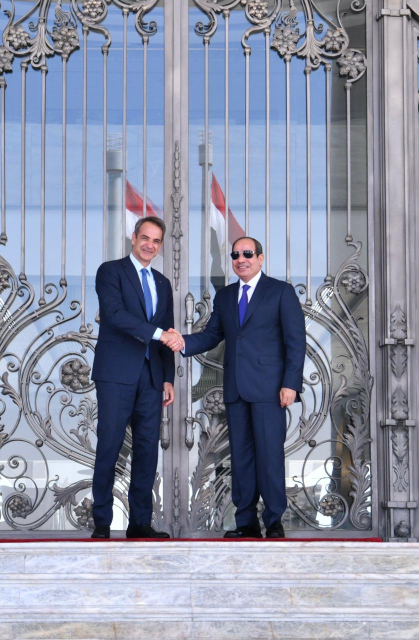 استقبل الرئيس عبد الفتاح السيسي اليوم بالعلمين الجديدة كيرياكوس ميتسوتاكيس، رئيس وزراء جمهورية اليونان.