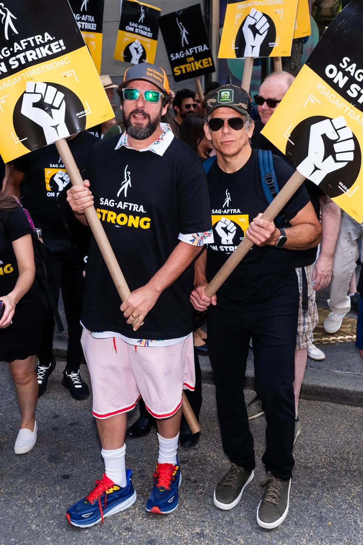 ورفع كل من الممثلين أدم ساندلر وبن ستيلر، لافتات تدعم إضراب ممثلي هوليوود، ضد تحالف منتجي الأفلام والتلفزيون.