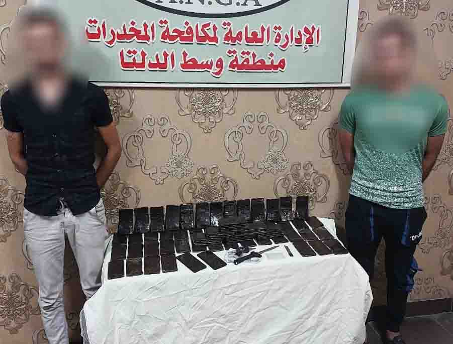 ضبط (شخصين، لهما معلومات جنائية) بدائرة مركز شرطة طلخا، وبحوزتهما (عدد 5 طربة لمخدر الحشيش وزنت واحد كيلو جرام - مبلغ مالى - 2 سلاح أبيض).