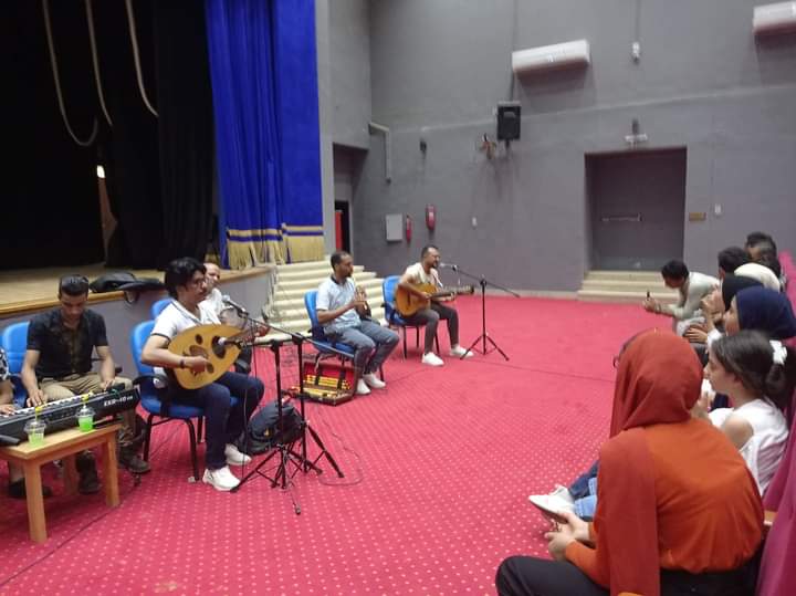 وقالت إبتسام عبد المريد مدير فرع ثقافة الوادى الجديد، إن الفنان والمايسترو حسام حسنى واصل تدريباته الموسيقية على مسرح سينما هيبس ومراجعة على مجموعة من الاغانى التى تم التديب عليها ومنها خفيف الروح، الأرض بتتكلم عربي، يا لولا دقت اديكى، الارض لو عطشانه،سيدى يا سيدى، الحلوة لسة صغيرة، سلم سلم، مصر يا أمة يا بهية،الكوتشينة، حب الوطن، بحضور المخرج حسن رفقى، والمخرج محمد سعد، المشرفين الإقليميين للمشروع بالخارجة.