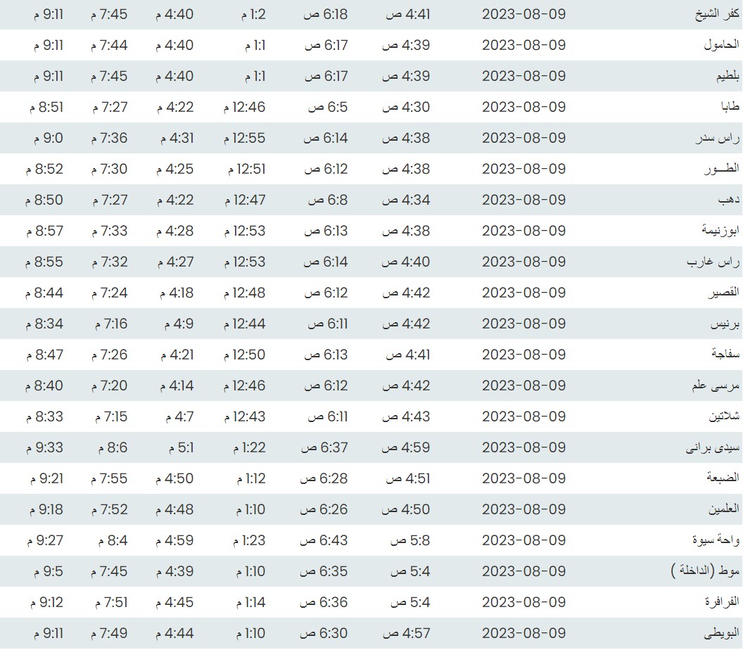 مواقيت الصلاة اليوم بتوقيت أسيوط