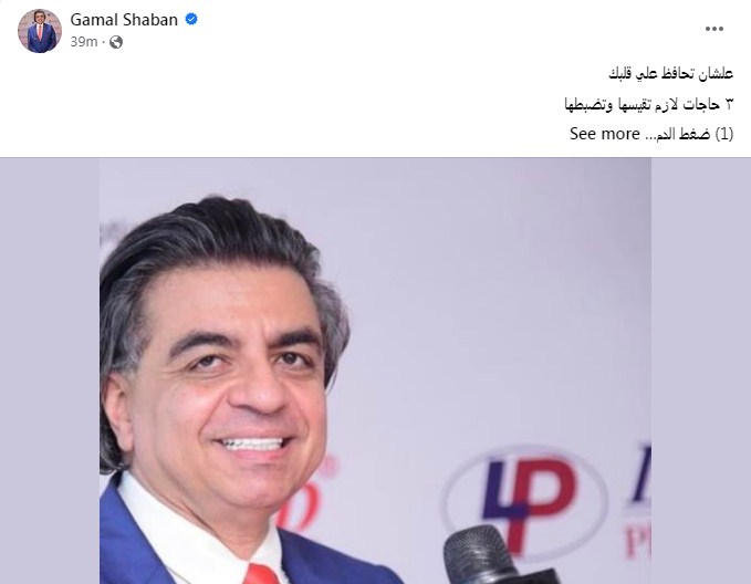 وكتب الدكتور جمال شعبان تدوينة، كشف فيها عن طرق الحفاظ على صحة القلب فقال"علشان تحافظ علي قلبك ٣ حاجات لازم تقيسها وتضبطها (1) ضغط الدم (2) نسبة السكر في الدم (3)الكولسترول".