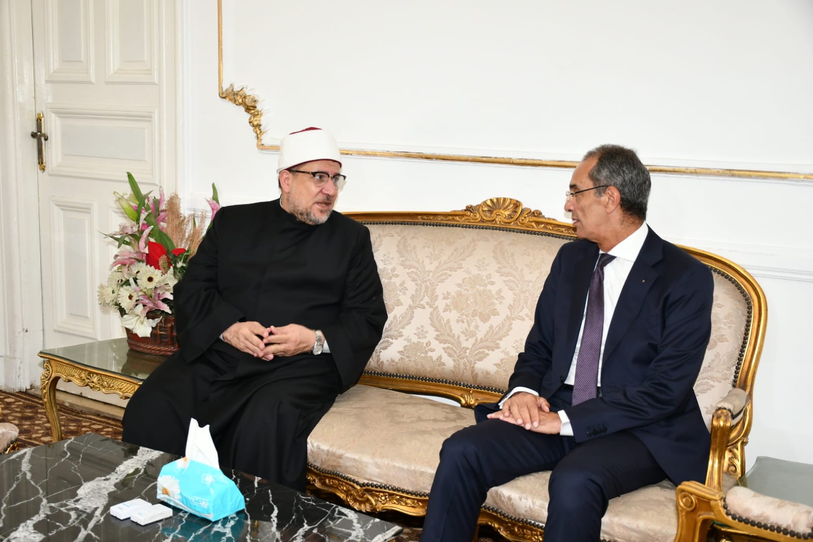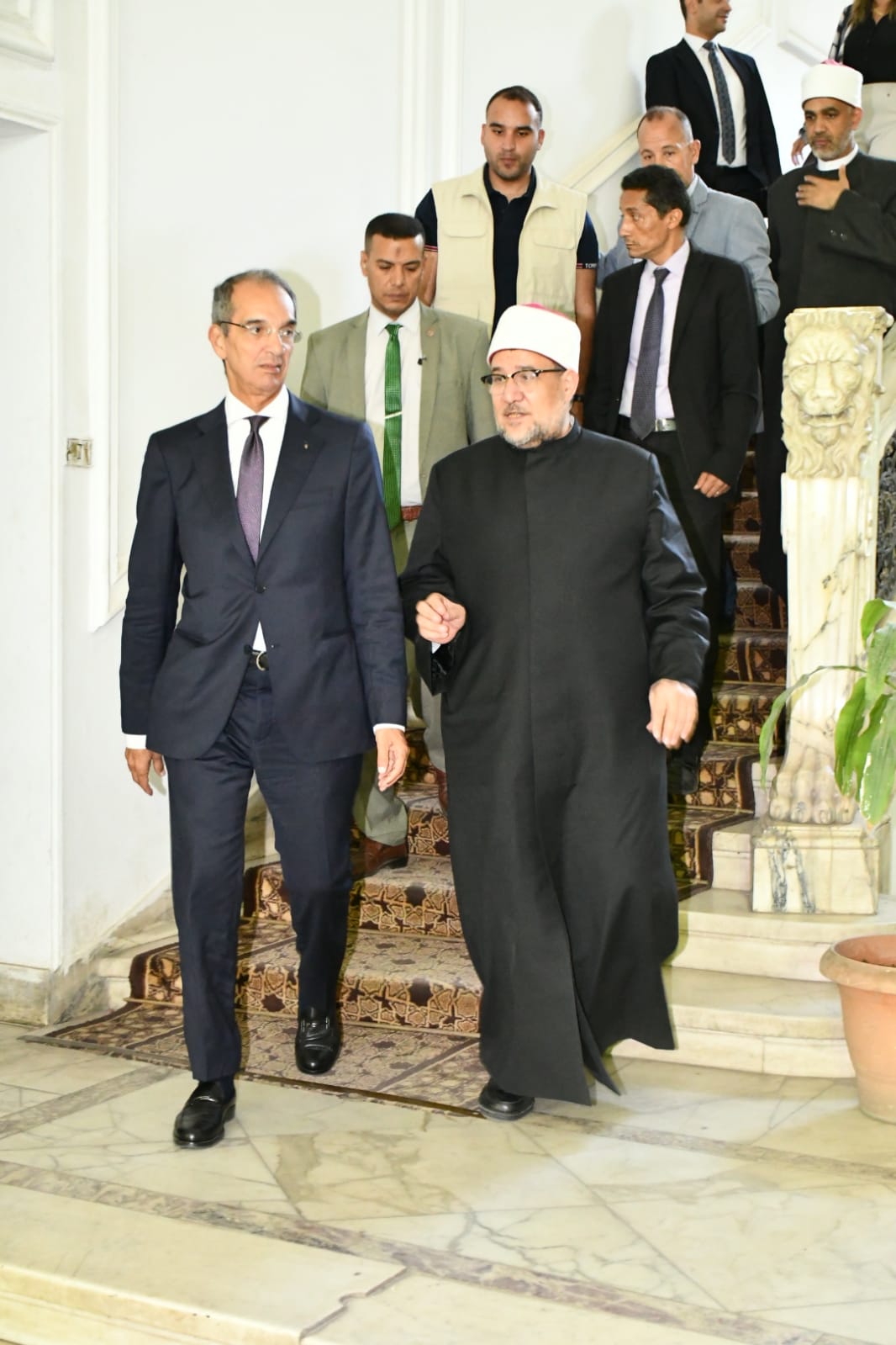 استقبل الدكتور محمد مختار جمعة وزير الأوقاف الدكتور المهندس عمرو طلعت وزير الاتصالات وتكنولوجيا المعلومات اليوم السبت 5 أغسطس 2023م بمقر المجلس الأعلى للشئون الإسلامية بجاردن سيتي، بحضور اللواء عمرو شكري الوكيل الدائم بوزارة الأوقاف، والمهندس خالد العطار نائب وزير الاتصالات للتنمية الإدارية والتحول الرقمي، والدكتور عبد الله حسن مساعد وزير الأوقاف للشئون الإدارية.