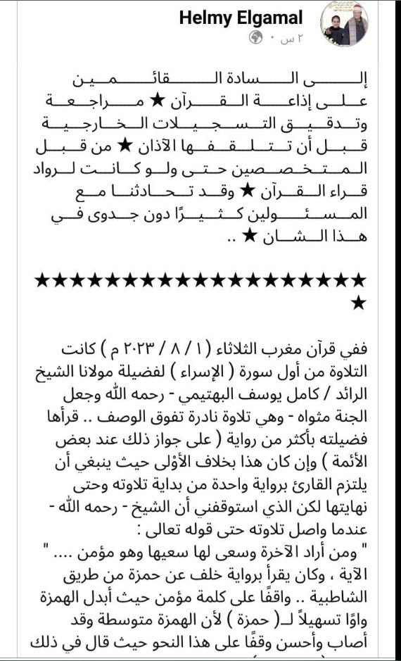 وقبل هذه الواقعة المؤسفة بأيام قليلة.. حاول قاريء مثير للجدل لفت الأنظار إليه من خلال الإساءة إلى القاريء العظيم كامل يوسف البهتيمي أحد رجالات دولة التلاوة الأبرار على مر عصورها، من خلال نشر "بوست" على حساباته الإلكترونية زعم فيه أنه أبلغ مسؤولي إذاعة القرآن الكريم عن خطأ في إحدى تلاوات القاريء الراحل. وبالعودة إلى التلاوة المقصودة تبين أن الشيخ "البهتيمي" لم يزلَّ ولم يلحن.