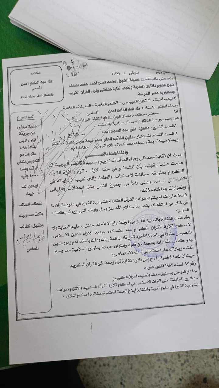 نقابة القراء تؤجل التحقيق مع الشيخ حلمي الجمل