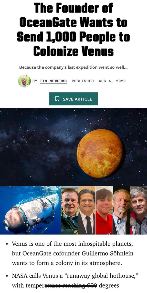 علق إياد الحمود على إعلان الشركة صاحبة غواصة تيتان الغارقة فقال: "شركة "أوشن جيت" التي صنعت غواصة تايتان ومات فيها 5 مليونيرات في قاع البحر قبل شهرين يخططون على مشروع جديد بإرسال 1000 شخص لكوكب الزهرة للعيش هناك، لم ينشروا طريقة التقديم ولكن يُعتقد أن العديد سيتقدمون للسفر إلى كوكب الزُهرة رغم المخاوف من وقوع كارثة. هل ستقدم طلب للذهاب معهم؟"