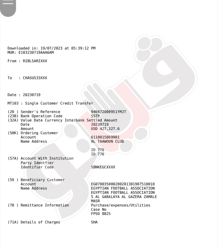 التعاون السعودي يرسل 427 ألف دولار للزمالك (مستند)