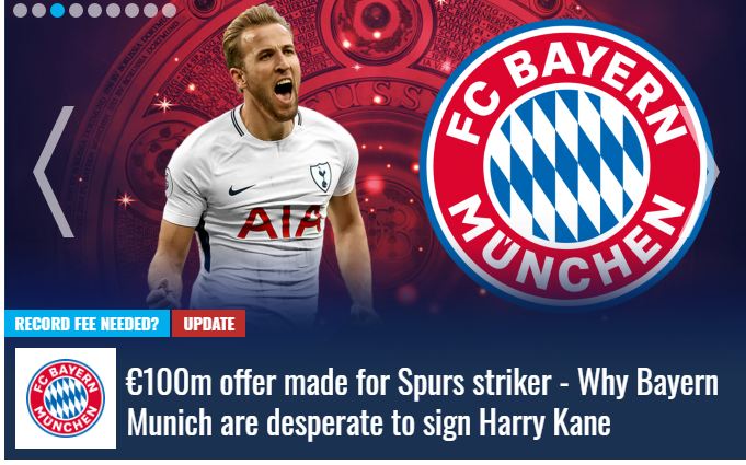 وذكر ترانسفير ماركت ان إدارة توتنهام طلبت من الفريق البافاري بعض المتغيرات مع إمكانية ضم لاعب شاب علي سبيل الإعارة من الفريق الألماني في صفقة هاري كين.