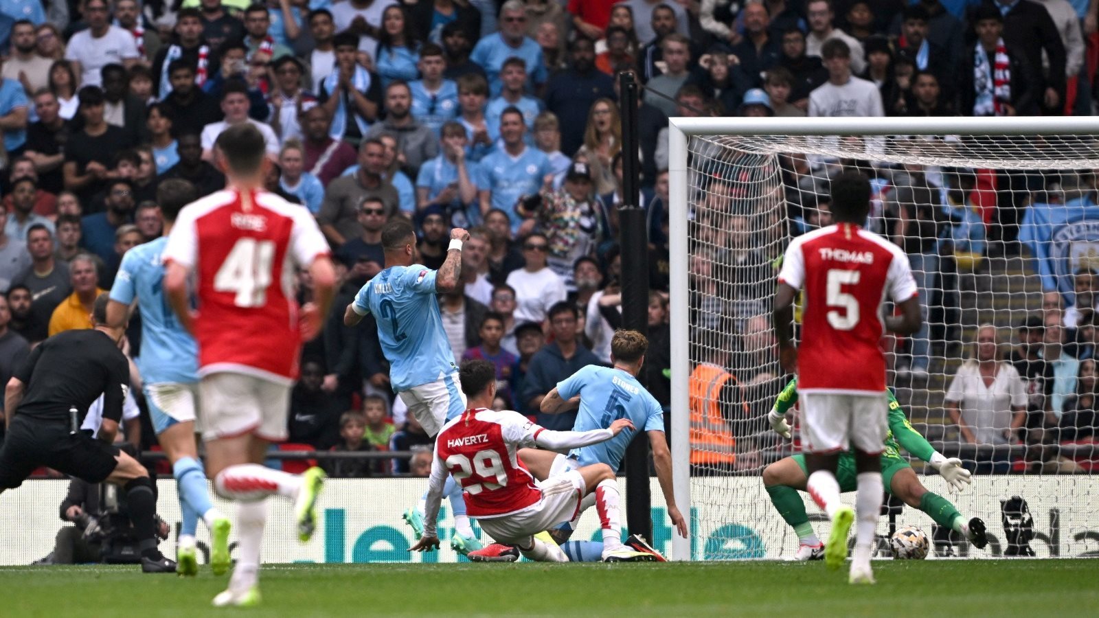 سجل بالمر الهدف الأول لـ مانشستر سيتي في شباك أرسنال بالدقيقة 76، بعد تصويبة رائعة بقدمه اليسرى سكنت شباك رامسديل، وسجل تروسارد هدف التعادل في الدقيقة العاشرة من الوقت المتحسب، بدلا من الضائع بعد تصويبة غيرت اتجاهها بعد ارتطامها بـ أكانجي.