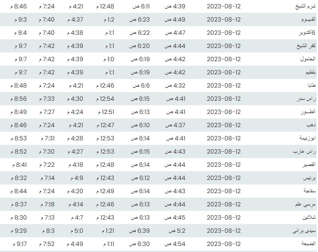 مواقيت الصلاة اليوم بتوقيت أسيوط