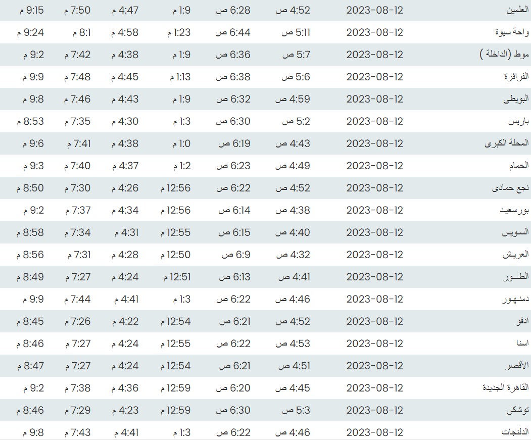 مواقيت الصلاة اليوم بتوقيت القاهرة