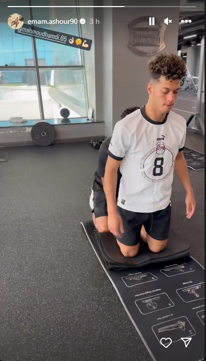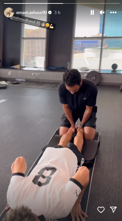 ونشر إمام عاشور فيديو عبر حسابه الشخصي على موقع التواصل الاجتماعي على إنستجرام خلال أدائه بعض التدريبات التأهيلية بالجيم رفقه محمود حمدي أخصائي التأهيل بالنادي الأهلي وذلك استعدادا للموسم القادم.