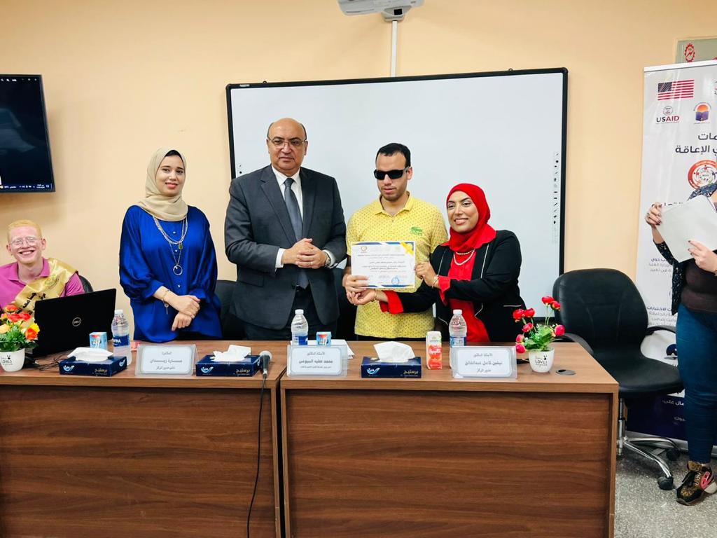 تحت رعاية الدكتور شريف خاطر رئيس الجامعة وريادة الدكتور محمد عطيه البيومي نائب رئيس الجامعة لشئون الطلاب وإشراف الدكتورة نيفين عبد الخالق مدير مركز مركز خدمات الأشخاص ذوي الإعاقة والدكتورة سارة زيدان نائب مدير المركز