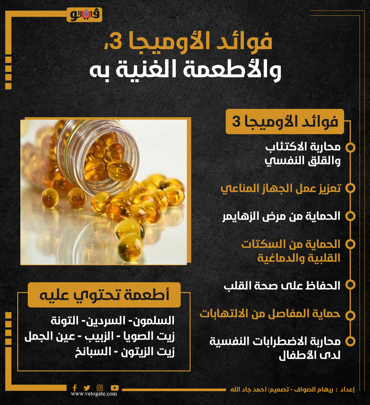 فوائد الأوميجا 3، والأطعمة الغنية به (إنفوجراف)