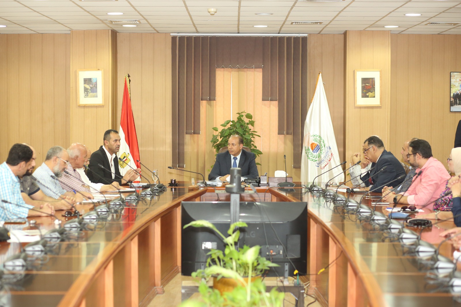 عقد الدكتور شريف خاطر رئيس جامعة المنصورة اجتماعا لمتابعة معدلات مشروع انشاء مبنى الأورام الجديد.
