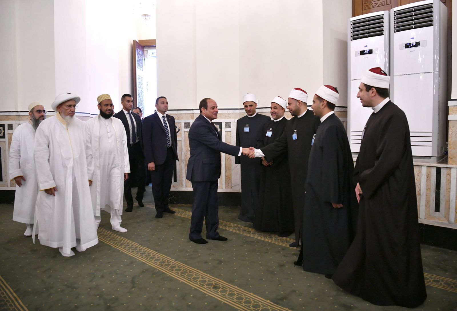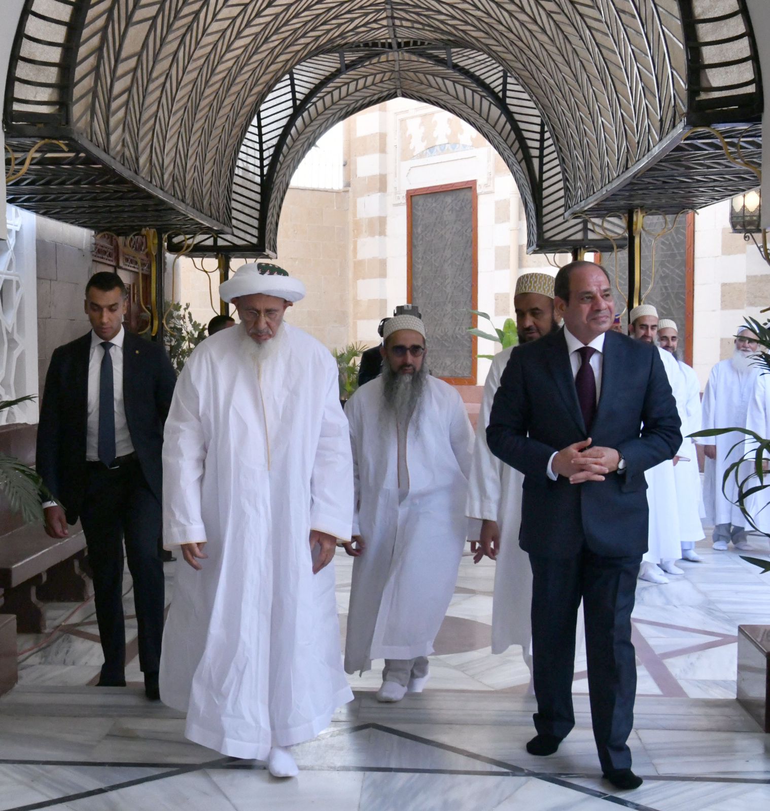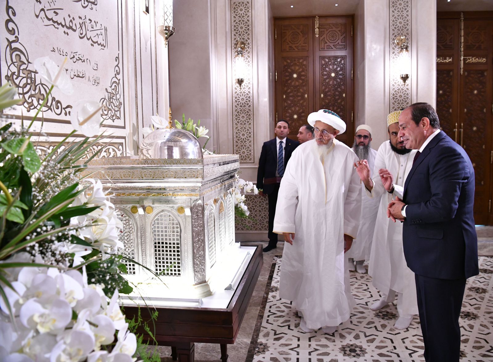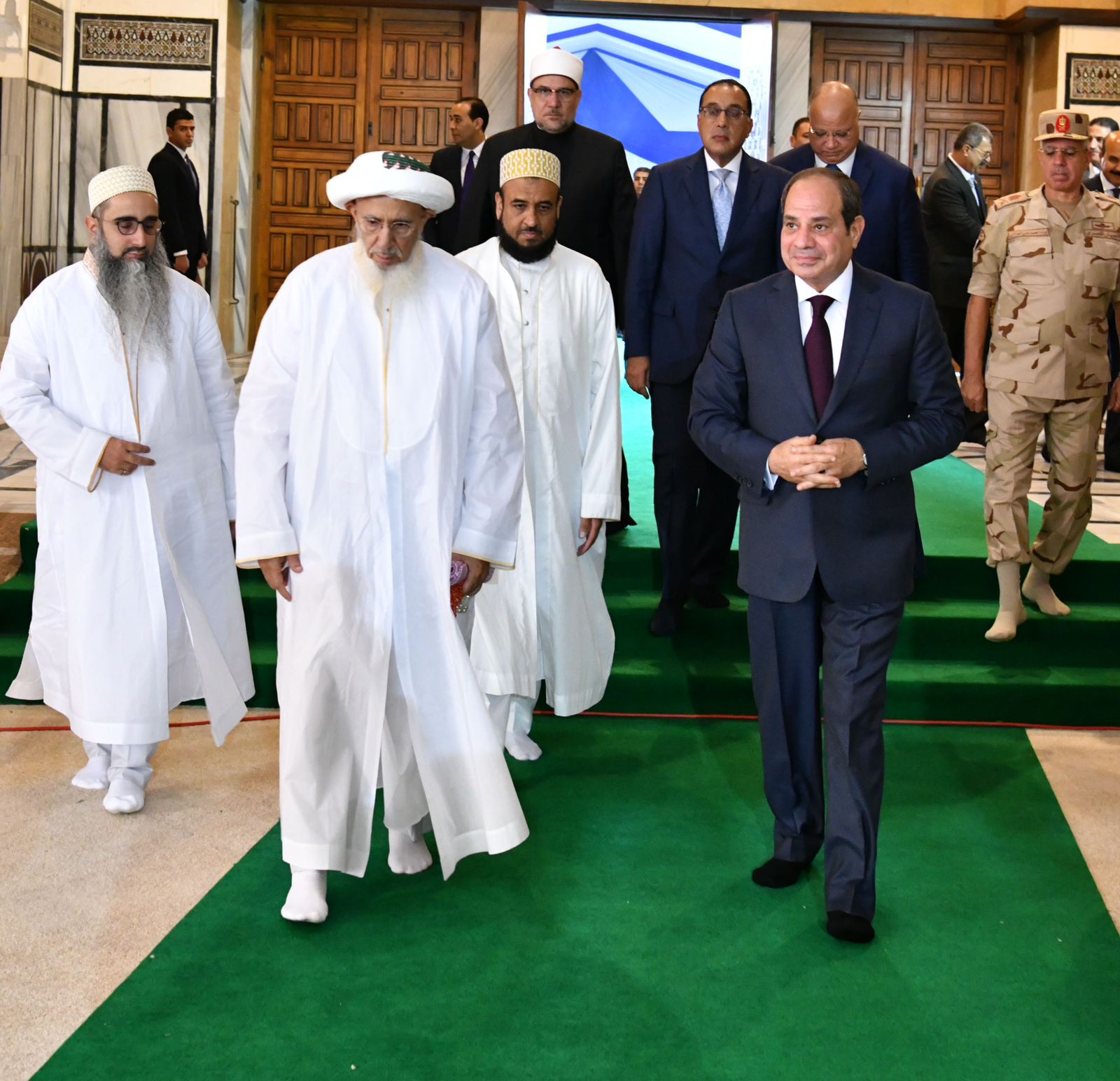 وعقب الافتتاح تفقد الرئيس السيسى وسلطان البهرة ساحة وأركان المسجد بعد أعمال التطوير والترميم