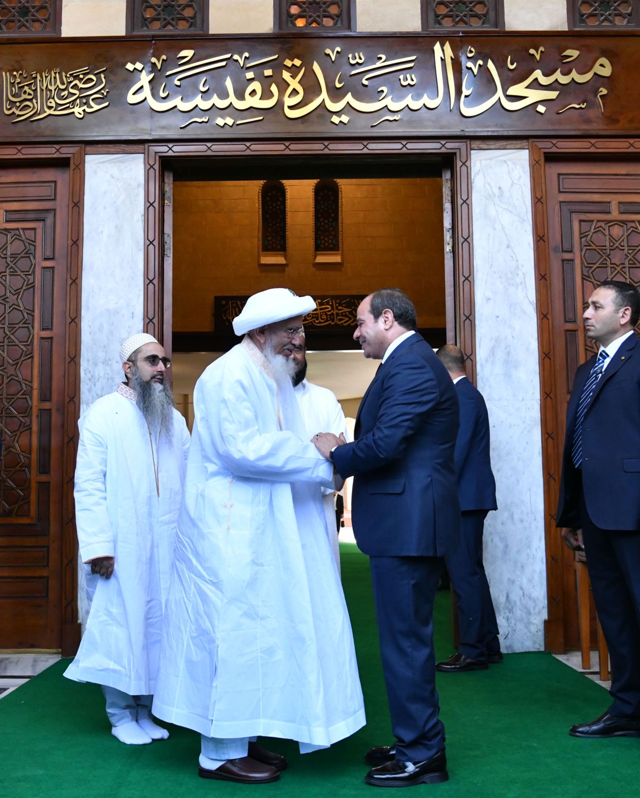 افتتح الرئيس عبد الفتاح السيسى اليوم يرافقه السلطان مفضل سيف الدين، سلطان طائفة البهرة بالهند أعمال التطوير والترميم لمسجد السيدة نفيسة رضى الله.