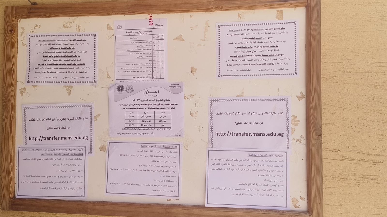 وأكد الدكتور شريف خاطر رئيس جامعة المنصورة أنه تم عمل لجان للاستعلامات للرد على استفسارات وشكاوى الطلاب، وتخصيص لجنة من العاملين بمكتب التنسيق والذين لديهم معرفة بالبرامج النوعية بكليات الجامعة للتعريف بها وتخصصاتها والرسوم الدراسية الخاصة بها، واستخدام معامل مكيفة حرصًا على راحة الطلاب، وتم عمل مسارات للدخول والخروج للطلاب منعًا للازدحام والتكدس، وتم تجهيز المكتب من الخارج بمظلات لحماية الطلاب من حرارة الشمس.