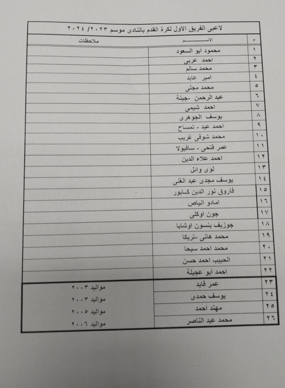 22 لاعبا في قائمة المقاولون العرب الأولى استعدادا للموسم الجديد