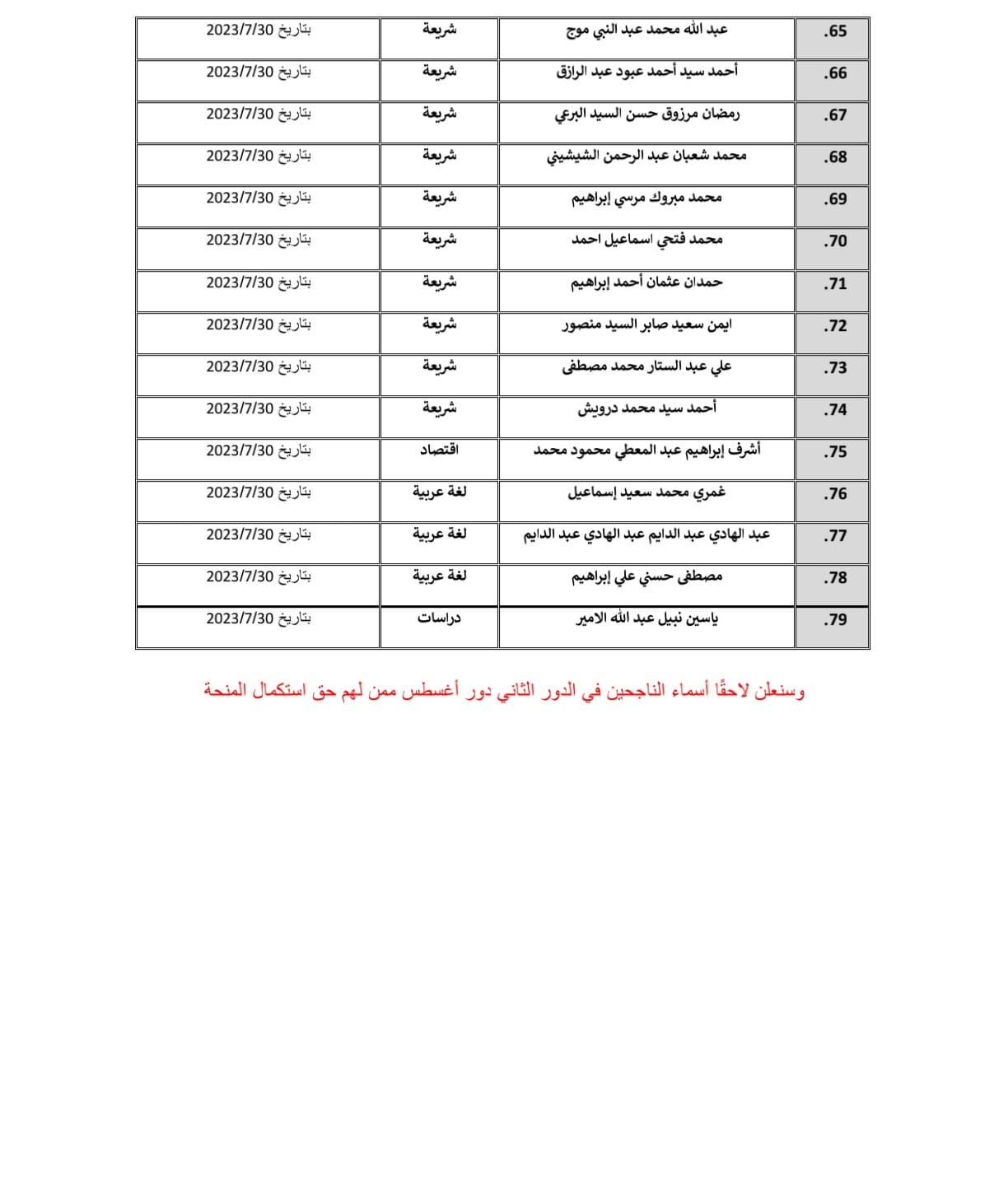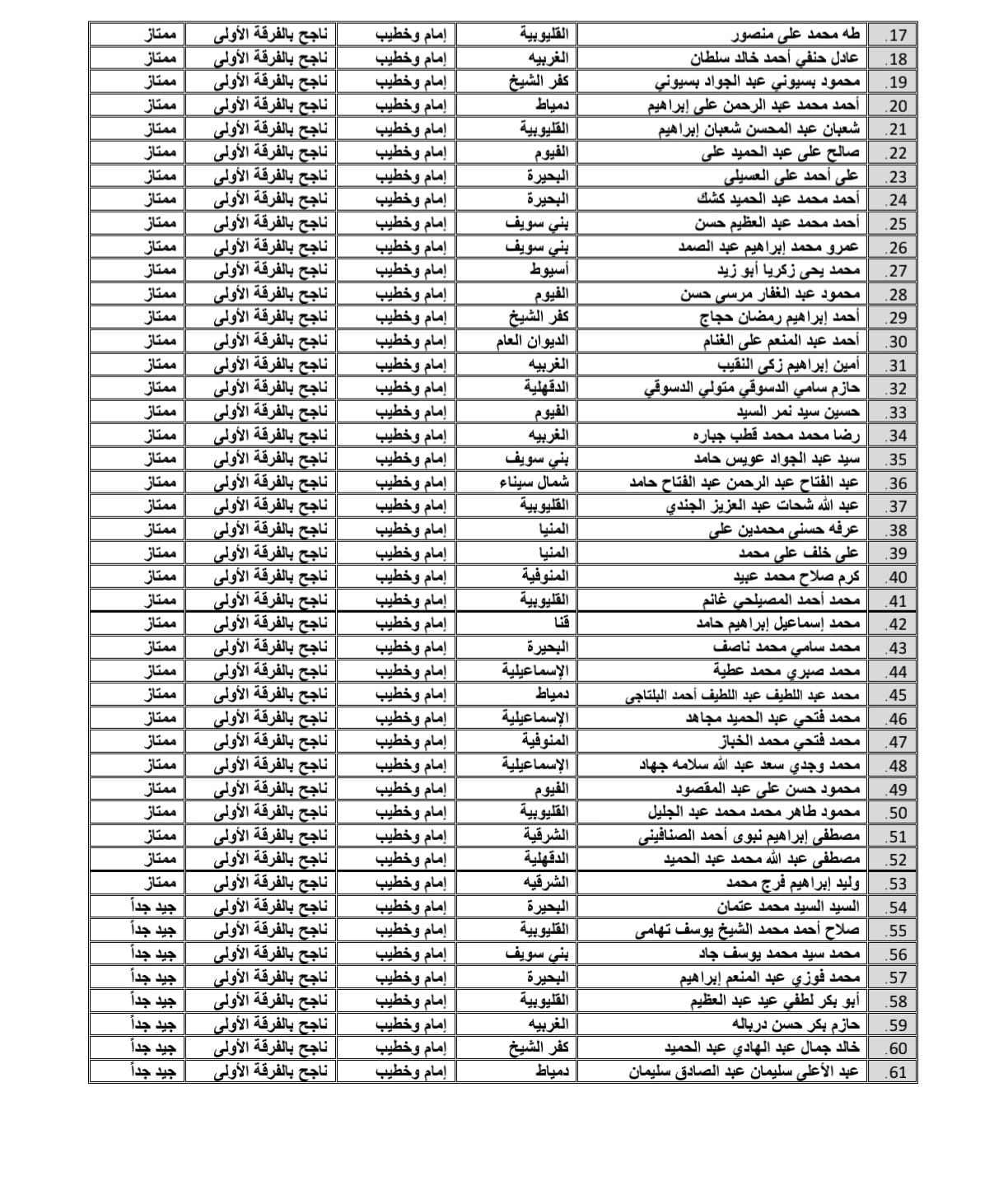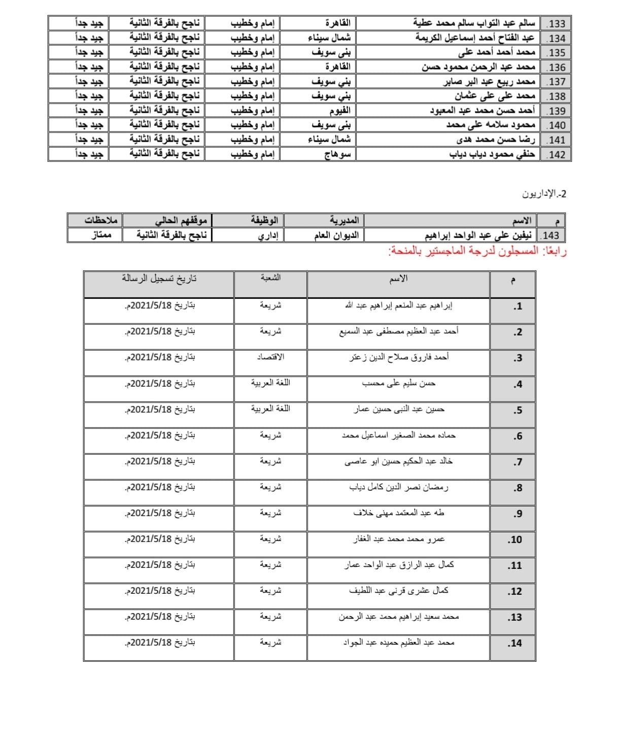 أعلنت وزارة الأوقاف أسماء المسجلين بالدراسات العليا ومرحلة الماجستير بمنحة الماجستير المجانية من الأئمة والواعظات والإداريين وهم أولًا: المرشحون الجدد للفرقة الأولى للعام 2023ـ 2024م