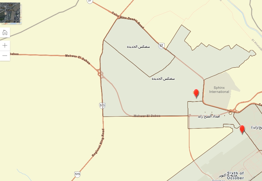 موقع ومساحات أراضي الإسكان المقترحة بسفنكس الجديدة
