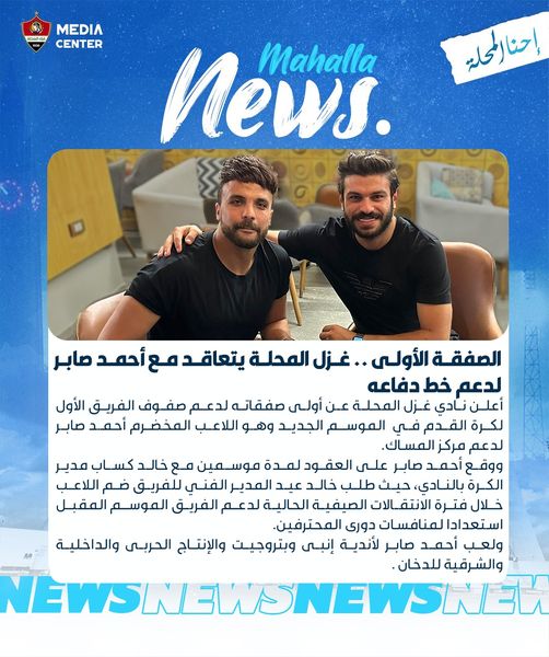 أعلن نادي غزل المحلة عن أولى صفقاته لدعم صفوف الفريق الأول لكرة القدم في الموسم الجديد وهو اللاعب المخضرم أحمد صابر لدعم مركز المساك.