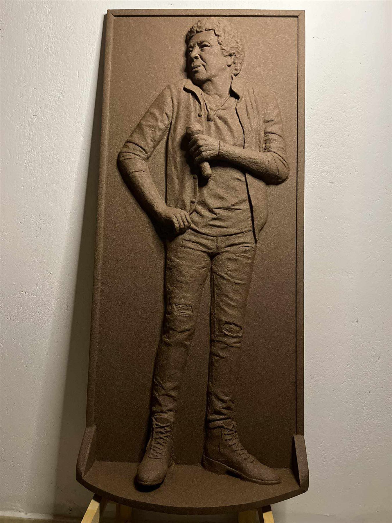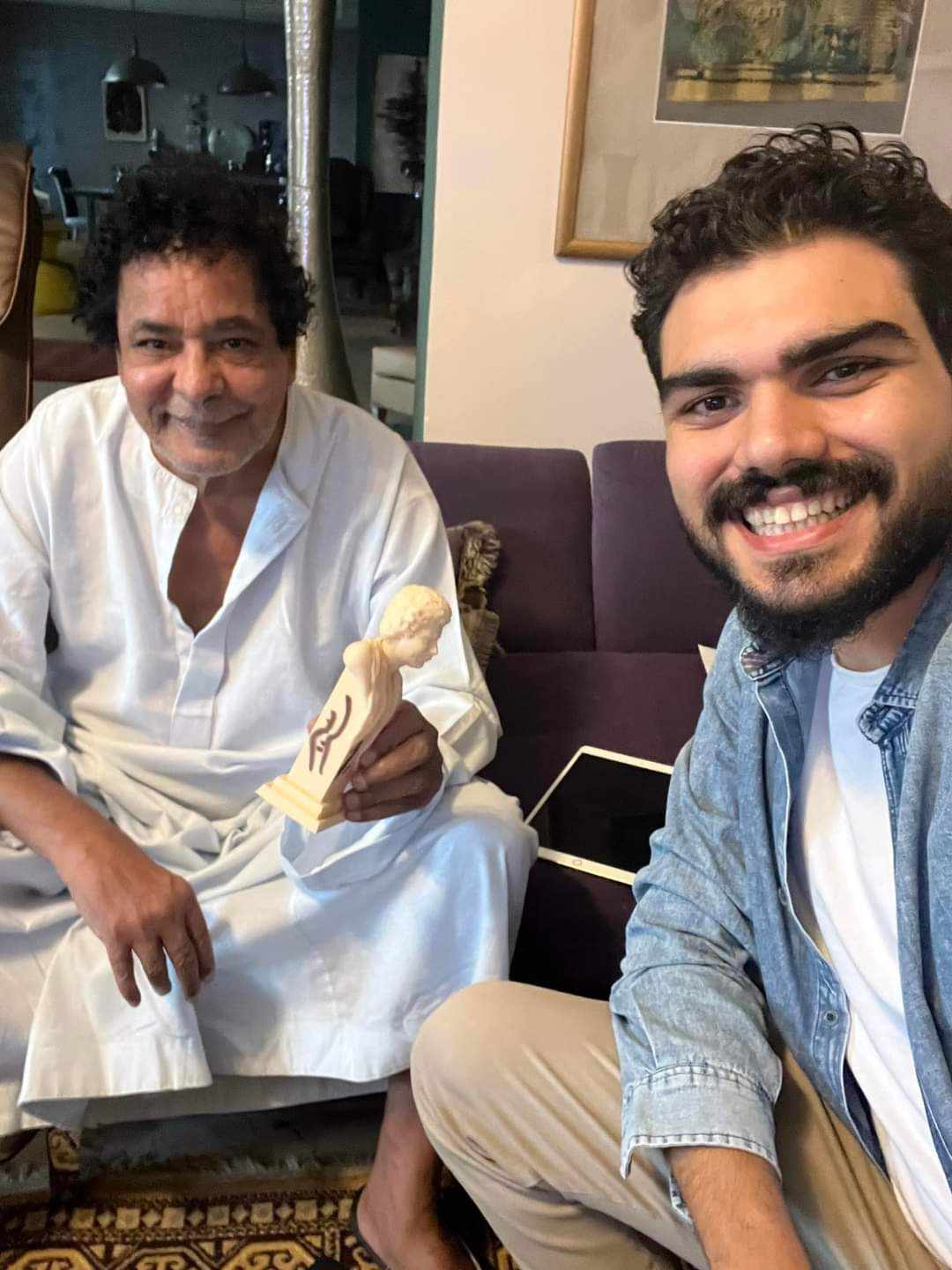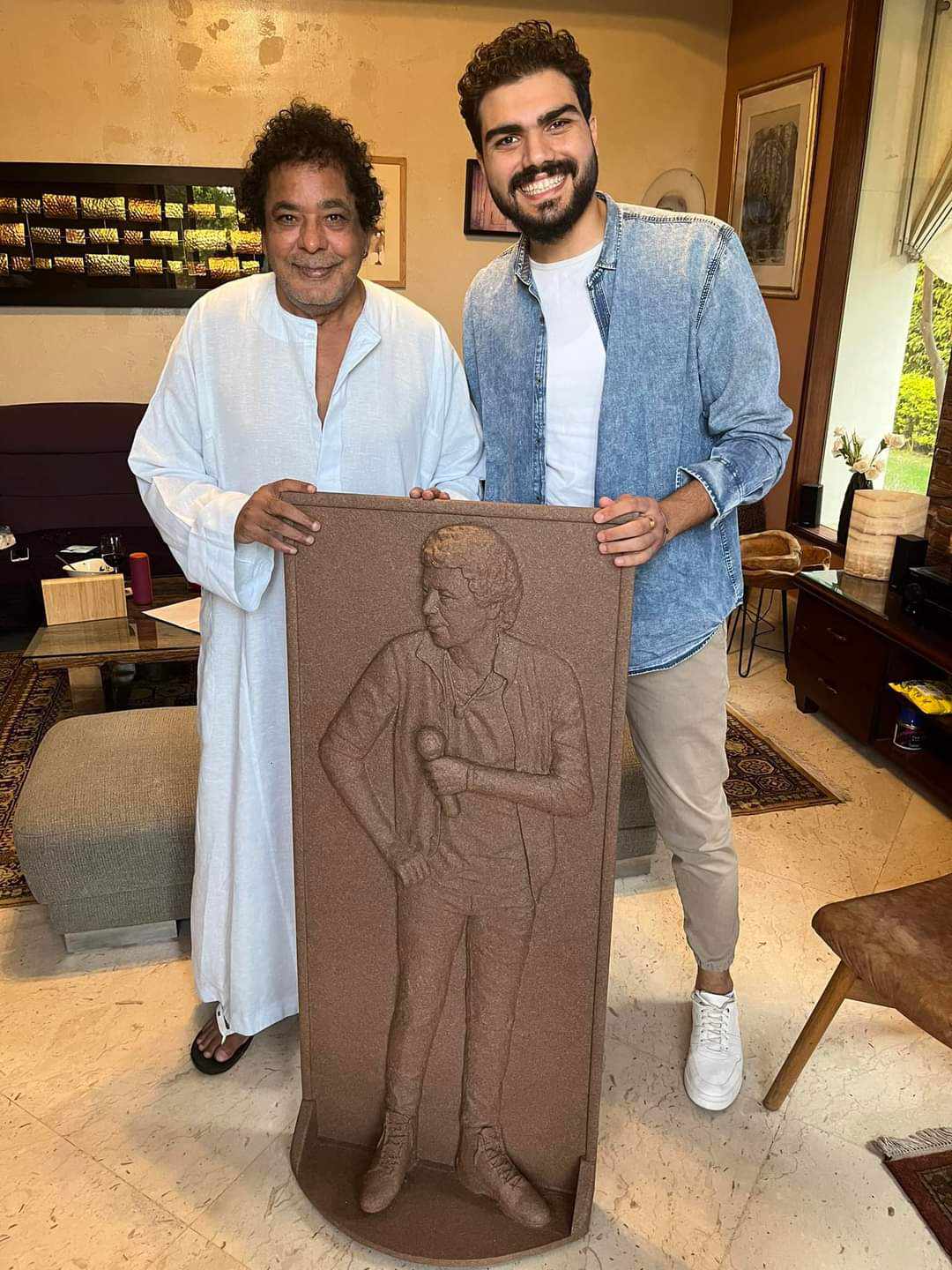 معيد بفنون جميلة المنيا ينحت جدارية وتمثالا لـ محمد منير، والكينج يستقبله: كنت بدور عليك من سنين (صور)