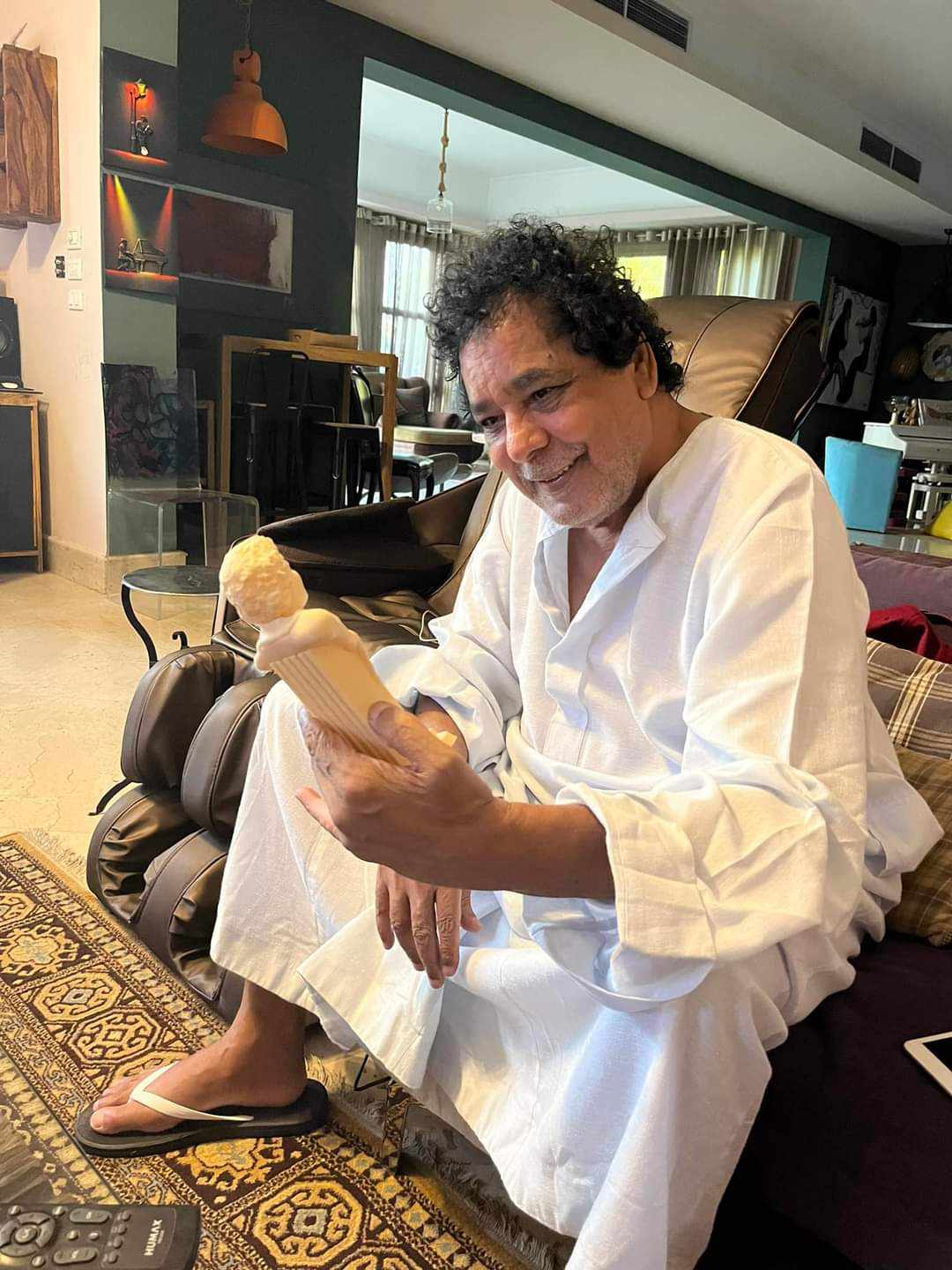 وقال “العامري”:" فكرة نحت جدارية للكينج محمد منير كانت منذ ثلاثة أعوام بسبب حبي وعشقي له وبعد أن أنهيت العمل قمت بنشر صوره على مواقع التواصل الاجتماعي وبالصدفة وصلت إلى الكينج".