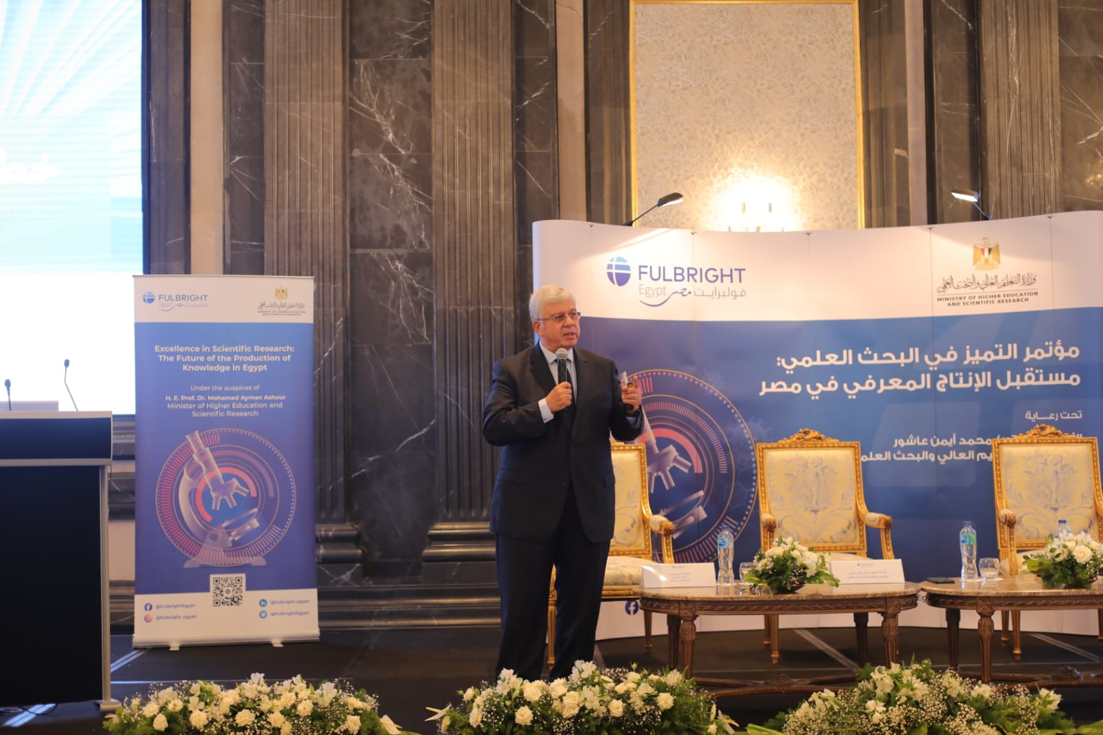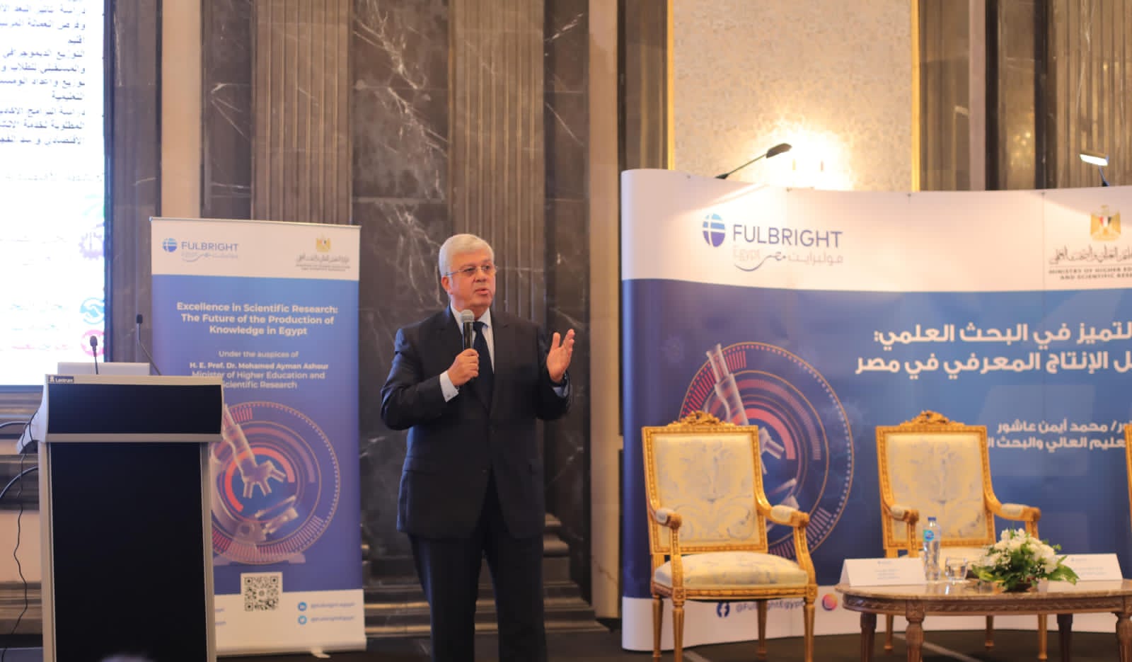 شهد الدكتور أيمن عاشور وزير التعليم العالي والبحث العلمي الفعالية التي نظمتها هيئة فولبرايت فى مصر بالتعاون مع وزارة التعليم العالي والبحث العلمي تحت عنوان (التميز في البحث العلمي مستقبل الإنتاج المعرفى في مصر).