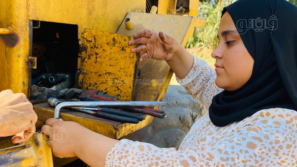 عندما يختلط طلاء الأظافر بشحم الميكانيكا.. «آية» طفلة المنيا قضت نصف عمرها في العمل على اللودر بعد مرض والدها.. وتشارك في مسابقة معرض العلوم والهندسة (فيديو وصور)