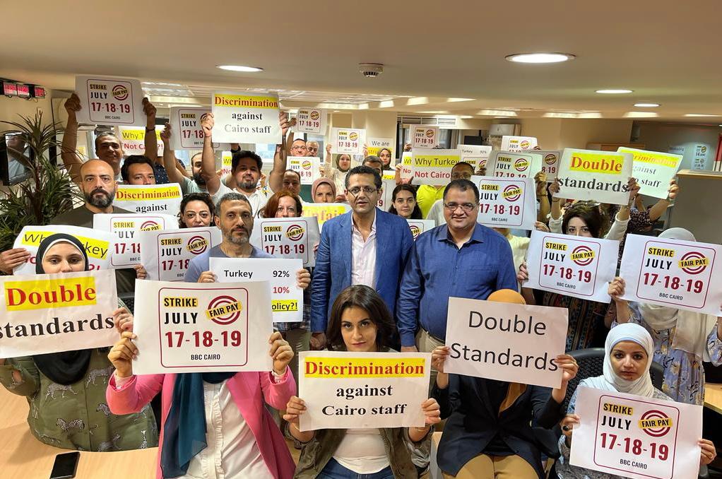 وأعلن العاملون في مكتب هيئة الإذاعة البريطانية في القاهرة، الدخول في إضراب عن العمل لمدة ثلاثة أيام من 17 وحتى 19 من يوليو الجاري، وذلك احتجاجًا على تدني الرواتب، وتدهور الأوضاع المعيشية، فضلا عن السلوك التمييزي الذي تتعمد الإدارة في لندن انتهاجه ضد مكتب القاهرة، فيما يخص السياسات المالية.