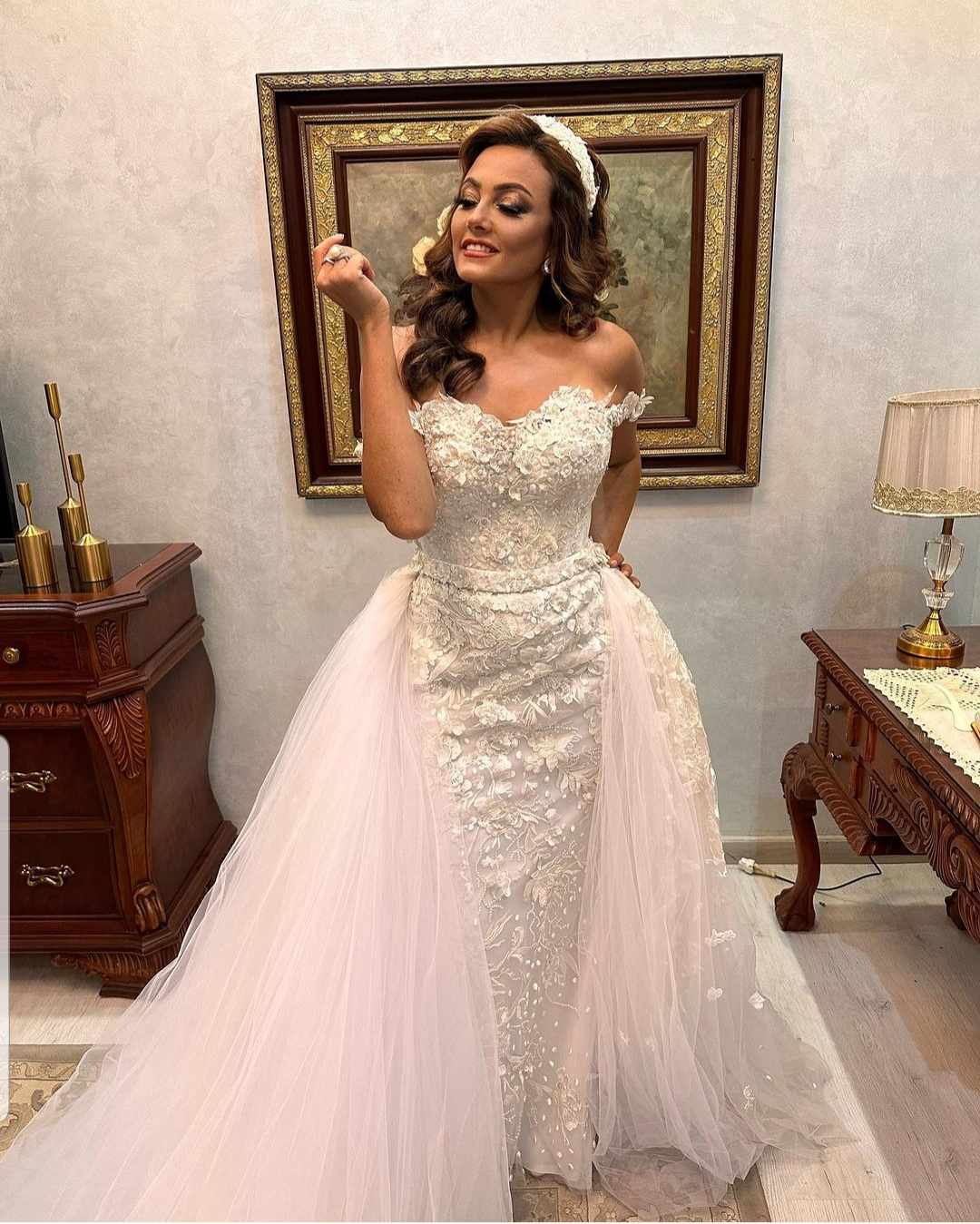 بشرى، أطلت الفنانة بشرى بفستان زفاف من تصميم هاني البحيري في كواليس مسلسلها الجديد "طبيبة شرعية" خطفت به الأنظار، وظهر معها الفنان فيراس سعيد مرتديا بدلة.