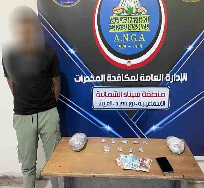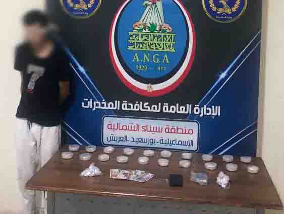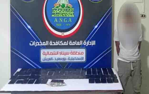 وضبط (عنصر إجرامى) بدائرة مركز شرطة فايد، وبحوزته ( 50 طربة لمخدر الحشيش وزنت 5 كيلو جرامات – مبلغ مالى).