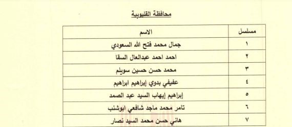 وضمت قائمة المعينين في مجلس إدارة الغرفة التجارية لمحافظة القليوبية، كلًا من جمال محمد فتح الله السعودي، أحمد أحمد عبد العال السقا، محمد حسن حسین سويلم، عفيفي بدوي إبراهيم إبراهيم، إبراهيم إيهاب السيد عبد الصمد، تامر محمد ماجد شافعي أبو شنب، هاني حسن محمد السيد نصار.