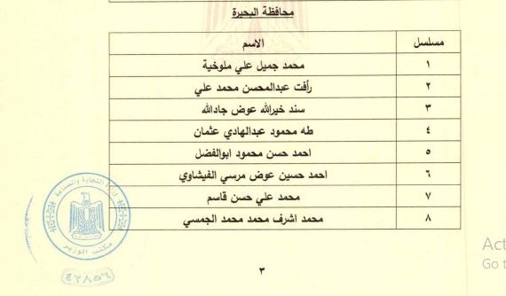 فيما ضمت أسماء المعينين في مجلس إدارة الغرفة التجارية بمحافظة البحيرة، محمد جميل علي ملوخية رأفت عبدالمحسن محمد علي، سند خيرالله عوض جاد الله، طه محمود عبدالهادي عثمان، أحمد حسن محمود أبوالفضل، أحمد حسين عوض مرسي الفيشاوي، محمد علي حسن قاسم، محمد أشرف محمد محمد الجمسي