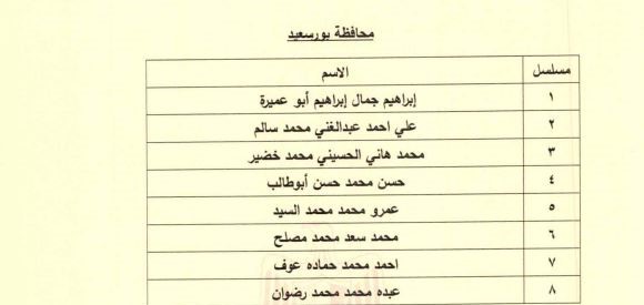 وضمت قائمة أعضاء مجلس إدارة الغرفة التجارية بمحافظة بورسعيد المعينين، كلًا من إبراهيم جمال إبراهيم أبو عميرة، علي أحمد عبدالغني محمد سالم، محمد هاني الحسيني محمد خضير، حسن محمد حسن أبوطالب، عمرو محمد محمد السيد، محمد سعد محمد مصلح، أحمد محمد حماده عوف، عبده محمد محمد رضوان.