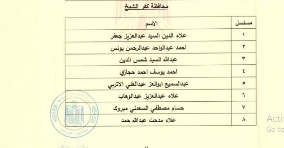 وضمت قائمة أعضاء مجلس إدارة الغرفة التجارية بمحافظة كفر الشيخ المعينين، كلًا من علاء الدين السيد عبد العزيز جعفر، أحمد عبدالواحد عبد الرحمن يونس، عبد الله السيد شمس الدين، أحمد يوسف أحمد حجازي، عبد السميع أبوالعز عبد الغني الاتربي، علاء عبدالعزيز عبدالوهاب، حسام مصطفي السعدني مبروك، علاء مدحت عبد الله حمد