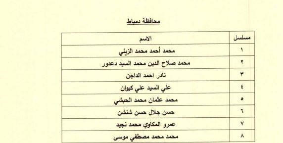 وضمت قائمة أعضاء مجلس إدارة الغرفة التجارية بمحافظة دمياط المعينين، كلًا من محمد أحمد محمد الزيني، محمد صلاح الدين محمد السيد دعدور، نادر أحمد الداجن، علي السيد علي كيوان، محمد عثمان محمد الحبشي، حسن جلال حسن شنشن، عمرو المكاوي محمد نجيد، محمد محمد مصطفي موسى.