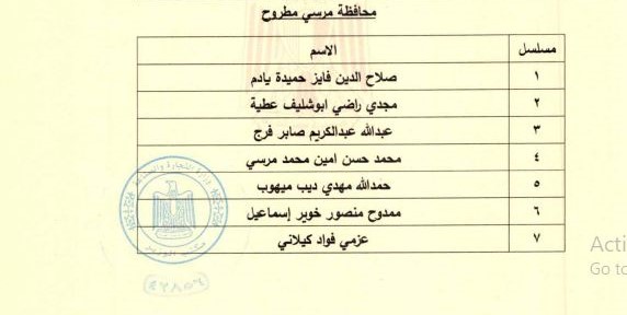 وضمت قائمة أعضاء مجلس إدارة الغرفة التجارية بمحافظة مرسى مطروح المعينين، كلًا من صلاح الدين فايز حميدة يادم، مجدي راضي ابوشليف عطية، عبدالله عبد الكريم صابر فرج، محمد حسن امين محمد مرسي، حمد الله مهدي ديب ميهوب، ممدوح منصور خوير إسماعيل، عزمي فواد كيلاني.