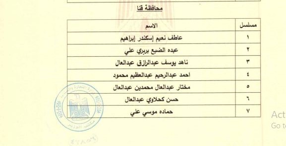 وضمت قائمة أعضاء مجلس إدارة الغرفة التجارية بمحافظة قنا المعينين، كلًا من عاطف نعيم إسكندر إبراهيم، عبده الضبع بربري علي، ناهد يوسف عبد الرازق عبد العال، أحمد عبد الرحيم عبد العظيم محمود، مختار عبد العال محمدين عبد العال، حسن كحلاوي عبد العال، حماده موسي علي.