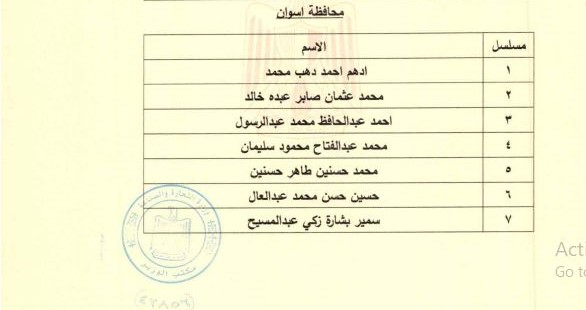 وضمت قائمة أعضاء مجلس إدارة الغرفة التجارية بمحافظة أسوان المعينين، كلًا من أدهم أحمد ذهب محمد، محمد عثمان صابر عبده خالد، أحمد عبد الحافظ محمد عبد الرسول، محمد عبد الفتاح محمود سليمان، محمد حسنين طاهر حسنين الشعارة، حسین حسن محمد عبد العال، سمير بشارة زكي عبد المسيح.