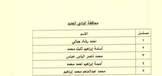 وضمت قائمة أعضاء مجلس إدارة الغرفة التجارية بمحافظة الوادي الجديد المعينين، كلًا من أحمد رشاد جبالي، أسامة إبراهيم ثابت محمد، محمد ناصر الياس عباس، أميمة إبراهيم أحمد محمد، محمد عبد المنعم محمد إبراهيم.