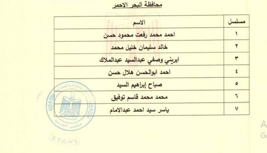 وضمت قائمة أعضاء مجلس إدارة الغرفة التجارية بمحافظة البحر الأحمر المعينين، كلًا من أحمد محمد رفعت محمود حسن، خالد سليمان خليل محمد، ايريني وصفي عبدالسيد عبد الملاك، أحمد ابوالحسن هلال حسن، صباح إبراهيم السيد، محمد محمد قاسم توفيق، ياسر سید أحمد عبدالامام.