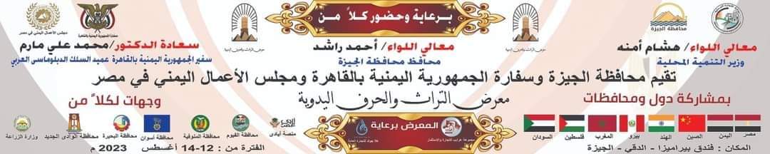 تنظم محافظة الجيزة غدًا بالتعاون مع منصة أيادي مصر ومجلس الأعمال اليمني معرضا للحرف التراثية والمنتجات اليدوية والذي يشمل منتجات السجاد والخزف والفخار وغيرها من المنتجات والحرف اليدوية التي تشتهر بها العديد من القرى بمحافظة الجيزة وذلك بفندق بيراميزا بالدقي.