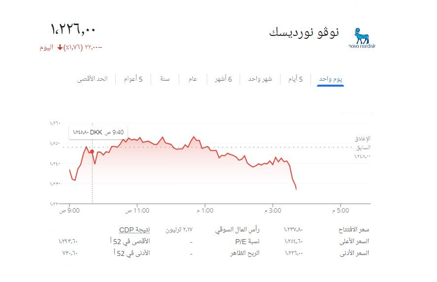 سهم شركة نوفو نورديسك الدنماركية للأدوية