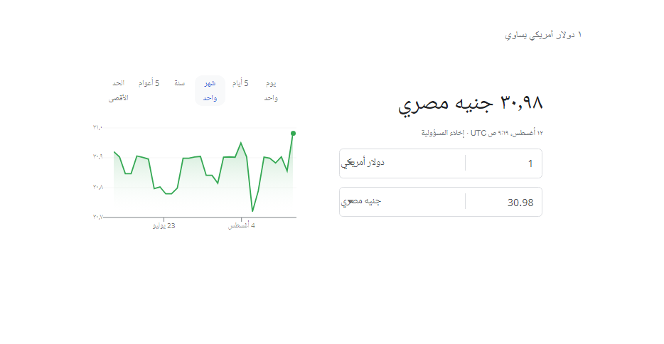 سعر الدولار الأمريكي فى البنك المركزى المصرى، مؤشر الدولار اليوم السبت 12-8-2023