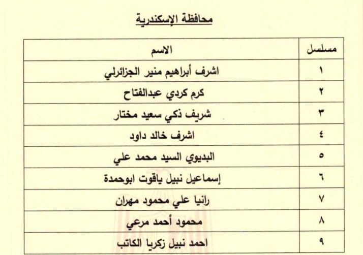 وشمل القرار تعيين كل من، كرم كردي عبدالفتاح، وشريف ذكى سعيد مختار، وأشرف خالد داود والبديوي السيد محمد على، وإسماعيل نبيل ياقوت ابو حمدة، ورانيا علي محمود مهران، ومحمود احمد مرعى، وأحمد نبيل زكريا الكاتب.