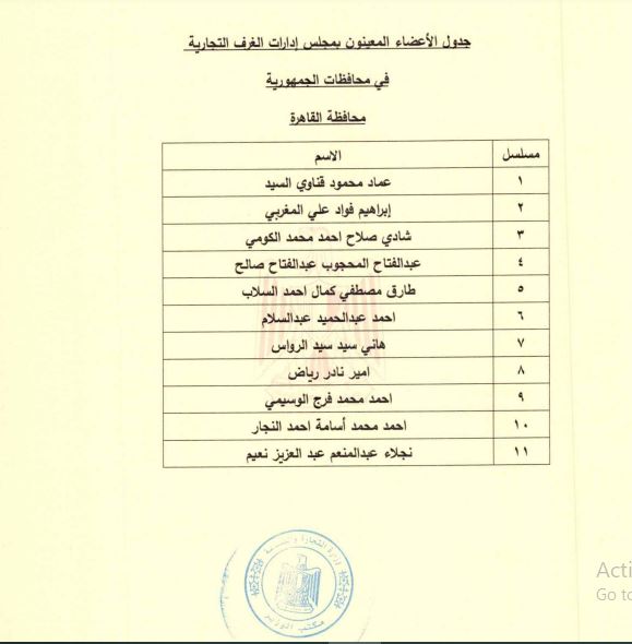 تعيينات مجلس إدارة الغرفة التجارية بالقاهرة